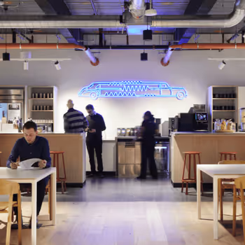 Modern multi city office spaces including barista, pool table, table tennis, and down time facilities.