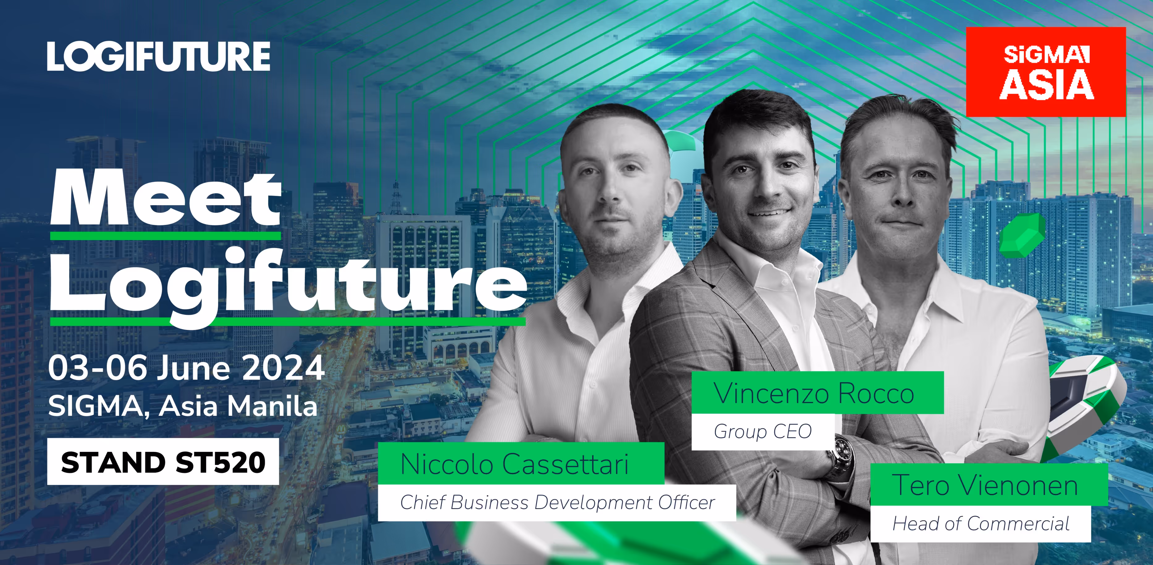 Logifuture’s Group CEO Vincenzo Rocco, Chief Business Development Officer Niccolo Cassettari and Head of Commercial Tero Vienonen, will all be in attendance at Stand ST520 on the conference’s second floor, and are looking forward to meeting all stakeholders across the iGaming industry.